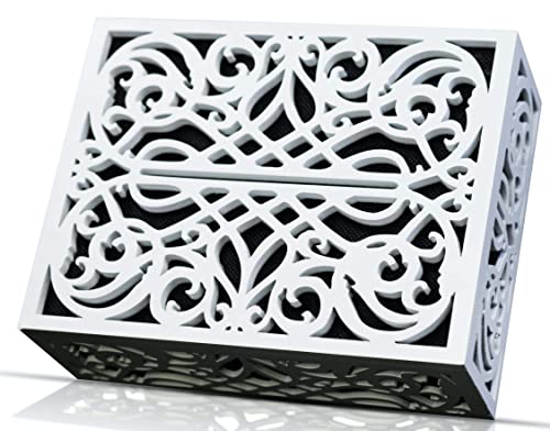 Upgrade the look of your home with the Kiavé Doorbell Chime Cover. Made of high-quality wood, this cover features a unique modern design that adds a touch of tropical elegance to your space. It is easy to install with all the necessary hardware included. The universal fit ensures compatibility with most doorbell chimes. The white color and neat edges give this cover a luxurious finish. With dimensions of 7” x 5.25”, make sure to measure before purchasing to ensure a perfect fit. Customers have rated this product 4.8 out of 5, praising its easy installation, beautiful appearance, and the ability to instantly upgrade their home.
