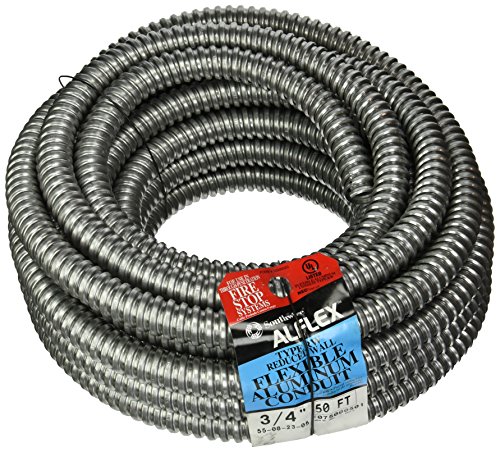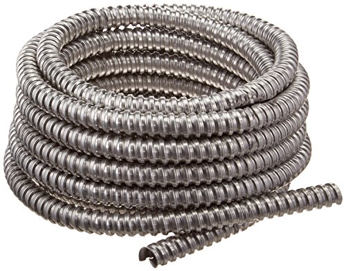 The Woods 55082121 25-Feet 1/2-Inch Alflex-Type RWA Reduced Wall Metal Aluminum Flexible Conduit is a high-quality conduit that provides mechanical protection for conductors and cables. With its high strength aluminum alloy construction, it is 66% lighter than steel while still offering superior corrosion resistance and flexibility. It has a smooth interior for easy wire pulling and cuts 80% faster than steel. This conduit is designed for use with listed connectors intended for NEC Type FMC and is perfect for various electrical installations. Its metallic color and compact size make it an ideal choice for both indoor and outdoor applications. Whether you need to protect wiring for outdoor security cameras or rewire your furnace, this conduit is affordable and performs exceptionally well.