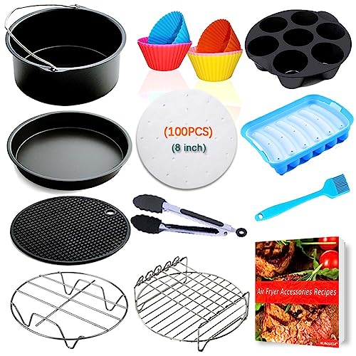The 8 Inch Air Fryer Accessories XL 11 PCS Set is a great addition to any air fryer. With its universal compatibility, versatile cooking options, and durable materials, it enhances your air frying experience. The set is easy to clean and made of safe materials. Although some accessories may be smaller than expected for larger air fryers, this does not detract from the overall value of the set. Plus, with a money-back guarantee, there’s no risk in giving it a try. Upgrade your air frying game with this accessory set and enjoy delicious and healthy meals!