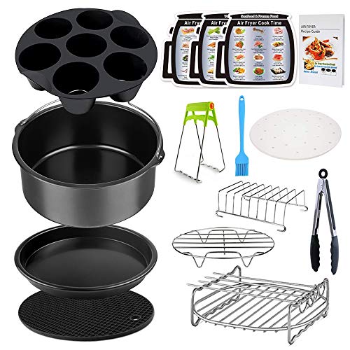 Enhance your air frying experience with this 7 inch General Air Fryer Accessories Kit. Made with food-grade material and FDA certification, these accessories are safe and healthier for your cooking. The kit includes a variety of items such as pizza pan, cake baking pan, skewers rack, and more. Compatible with most brands of air fryers, this kit expands your cooking options and comes with a free recipe cookbook. The accessories are dishwasher safe and easy to clean. Although some customers found the size to be smaller than expected, overall the product received positive reviews for its functionality and quality.