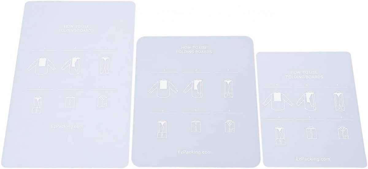 Here’s another shirt folding board for travel! The EzPacking Folding Board is a set of lightweight and compact plastic boards of different sizes. Each board weighs only 6 ounces, so you can bring them on your trip without adding extra baggage weight. You will also love how it has step-by-step folding instructions printed on the board. Use this to fold your clothes neatly before packing them in a bag.