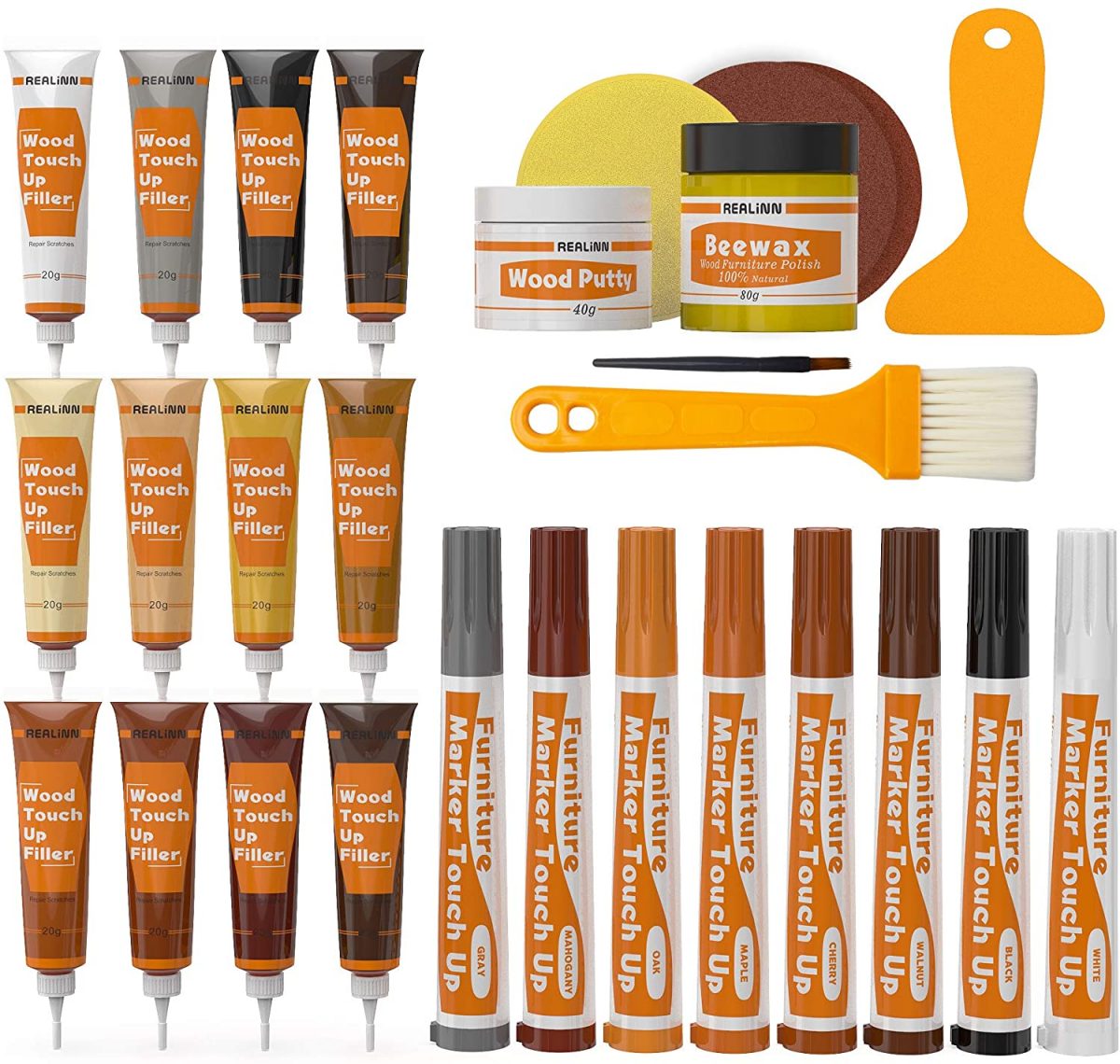 Wood putty is a cost-effective solution, too. A small container can last you a long time, and even when it dries in the bottle, a few drops of acetone is enough to refresh it.