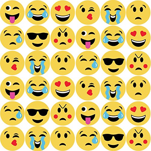Add a fun and playful touch to your walls with these 36 cute emoji wall decals. Each decal is 4 inches in diameter and features 9 different emoji faces. Made with eco-friendly, water-based, odorless inks, these decals are PVC-free and certified as green guard. The premium matte adhesive fabric allows for easy removal, repositioning, and reuse. With a peel and stick design, these decals leave no bubbles or residue, and the artwork extends right to the edge. Available in yellow, black, and red colors, these emoji wall decals will bring a cheerful vibe to any space.