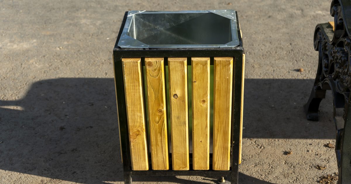 This last trash can holder plays with form to give an illusion of an almost-triangular body which is very uncommon in the realm of trash can enclosures. This one combines gray faux wood panels with a black metal frame in a beautiful matte finish. It should be noted that it has derives most of its inspiration from the industrial style, but it’s then modernized with a lot of clever play on metal forms. This results in a cool and contemporary wood trash can holder.