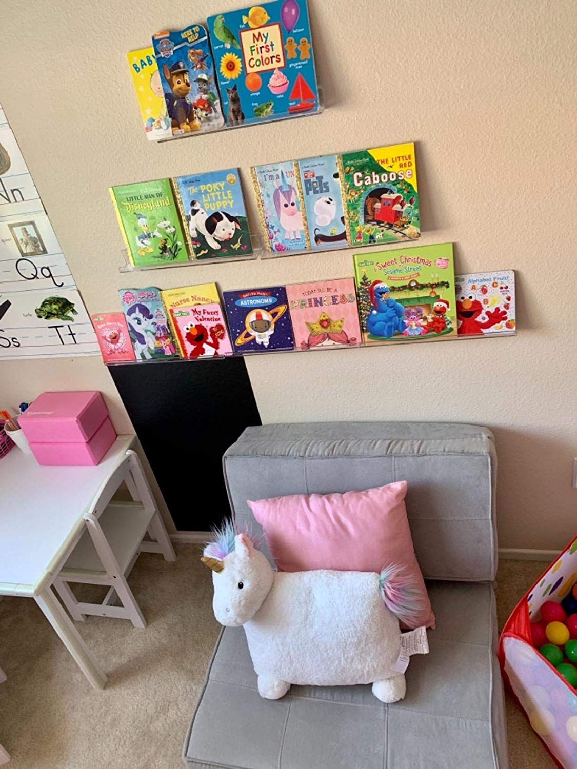 Don’t think that traditional toy storage can’t be exciting. There’s nothing wrong with using shelves as your way of storing or displaying your child’s toys. This is especially true with floating shelves!