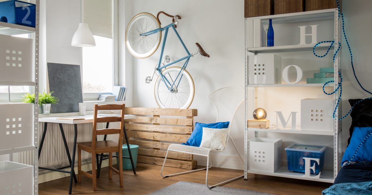 If you can’t or do not have the entire wall to spare for storage, hang in a smaller variant. You will need a few sturdy flat boards or wooden slabs and a strong rope. Drill double holes on the sides of the wood slabs. Put these bedroom shelves together using cables, and these room organization ideas will fetch you great complements.