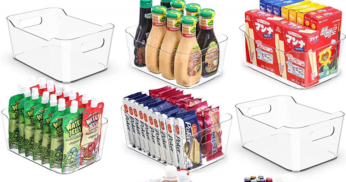 The Stackable Refrigerator Organizer Bins come in a 6-pack, each with portable handles and lifting feet for easy stacking and side by side storage. Measuring 10"L, the containers are suitable for storing fruits, vegetables, yogurts, canned goods, cheese, meat, and dry goods in the pantry. They are made of durable, shatter-resistant plastic that is food-safe, BPA and Chlorine-free. This product comes with 20 airtight plastic bags that can extend the shelf life of food. The clear containers are ideal for organizing kitchens, countertops, pantry shelves, refrigerators, freezers, cabinets, and as drawer organizers. They can be wiped clean with mild soap and water, but are not dishwasher safe. If you have any issues or questions, send a message to the seller through Amazon, and they will respond within 24 hours.