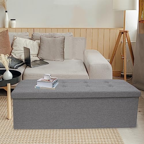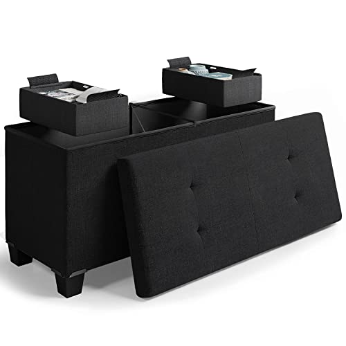 The SONGMICS 43 Inches Folding Storage Ottoman Bench is a great addition to any room. It provides ample storage space and can be used as a seat or coffee table. It is easy to assemble and fold for space-saving storage. Although it has some drawbacks, it is a good value for the price and highly recommended by most users.
