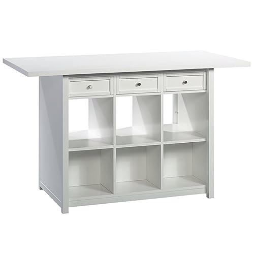 The Sauder Craft Pro Series Work Table in a white finish is a versatile and stylish addition to any home. Made with a melamine top surface that is heat, stain, and scratch-resistant, this work table is built to withstand the demands of any creative project. With three storage drawers that can be pulled out from either side of the table and function as a tray, you'll have plenty of space to keep your supplies organized. The open shelving allows for storage and display of home décor, and the table is finished on all sides, making it easy to place anywhere in your home. Whether you're a hobbyist or a professional, the Sauder Craft Pro Series Work Table is sure to enhance your creative space.