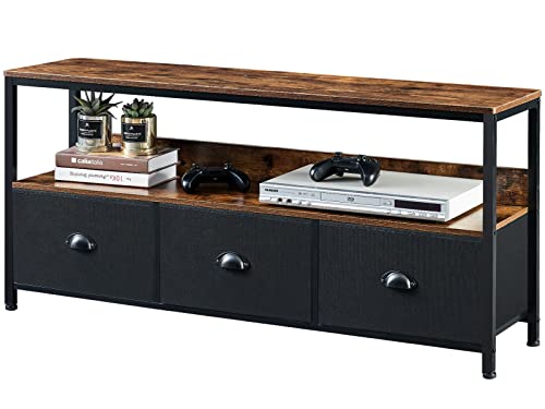 The EnHomee Dresser TV Stand Entertainment Center is a versatile storage solution that combines style and functionality. With its large storage capacity and sturdy construction, it is perfect for use in the bedroom, living room, or entryway. The tv stand features 5 foldable fabric drawers that provide ample storage space and protect your privacy. It can accommodate a TV up to 55 inches and has three open shelves for additional storage. Made from a sturdy metal frame and durable wood board, it offers stable support and is built to last. The dresser tv stand is easy to assemble and comes with all the necessary tools and accessories. With its rustic brown finish and stylish design, it will complement any home decor.