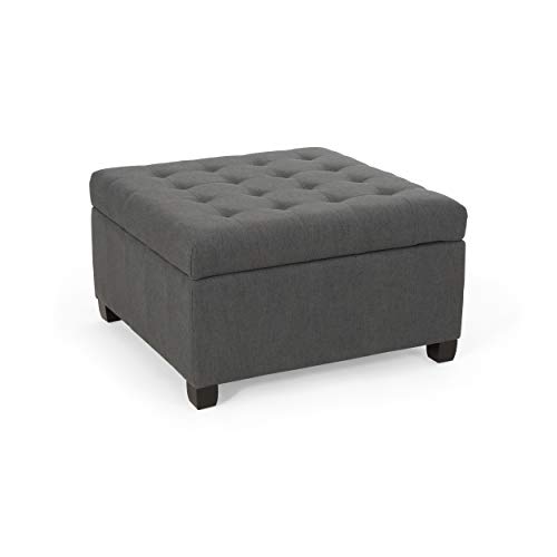The Christopher Knight Home Hedda Tufted Fabric Storage Ottoman is a contemporary piece that offers ample storage space for pillows and blankets. The button-tufted stitching on the lid provides an extra touch of sophistication. The waffle stitch pattern adds texture to the piece. It is generously upholstered, allowing any room to have a refined appearance, and provides a smooth, immaculate texture. This storage ottoman uses pressure hinges, so the lid stays open on its own and ensures a soft close. The dimensions are 31.00” W x 31. 00” D x 18. 60” H, and it is available in a Dark Gray or Dark Brown color.