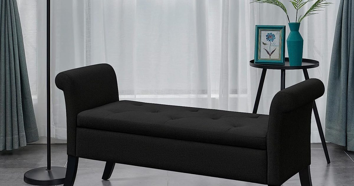 Yaheetech’s large storage ottoman features a delightful blend of fabric and pine wood with charming rolled armrests that brings a touch of warmth and sophistication to any room. But that’s not all! This stylish beauty also hides a wonderful secret—the hidden compartment storage under its top, perfect for tucking away seasonal items, making it a true lifesaver for small living spaces. Additionally, bacause of it’s crafted with a combination of sturdy composition boards, P2 MDF board, and solid pinewood legs, this bench boasts remarkable strength.
